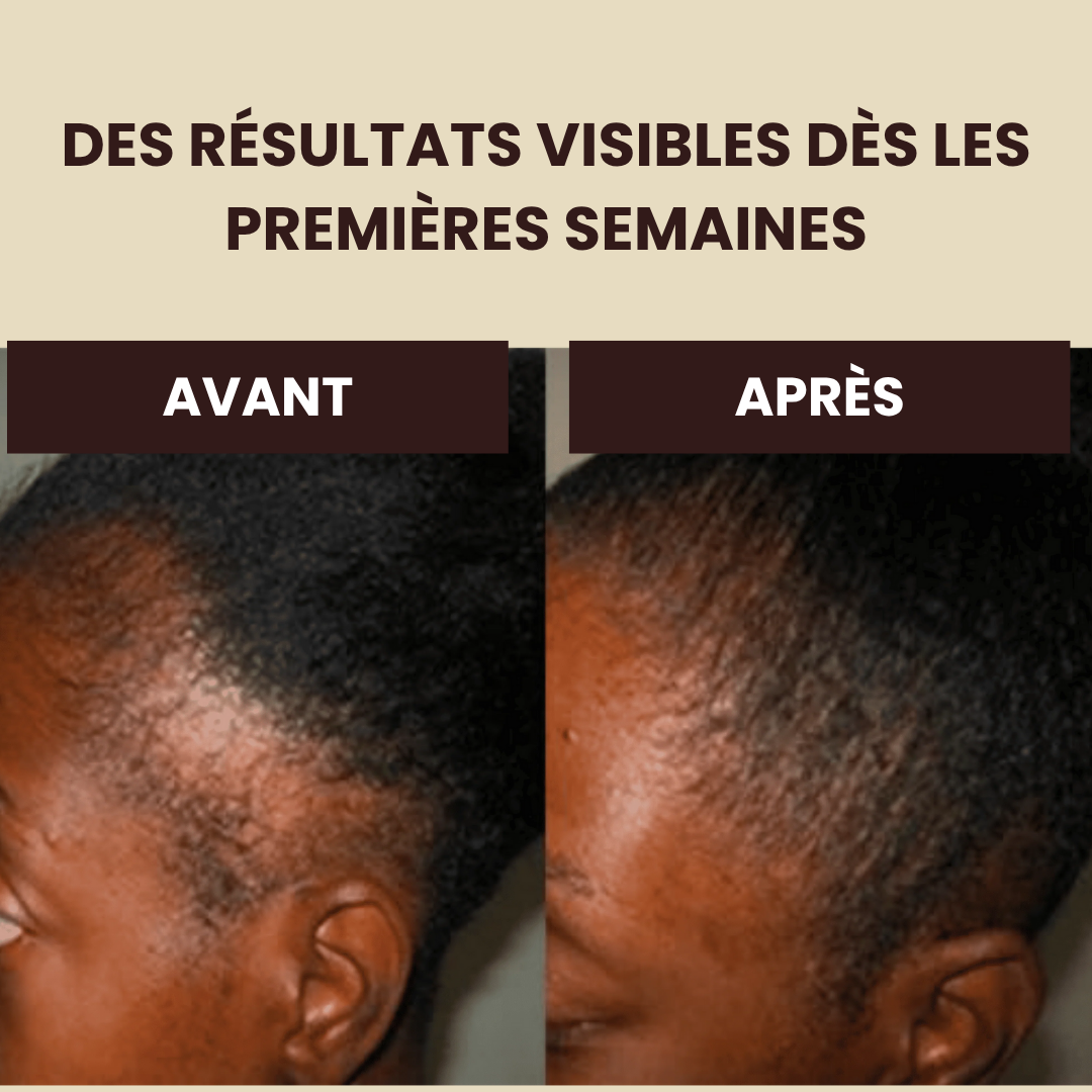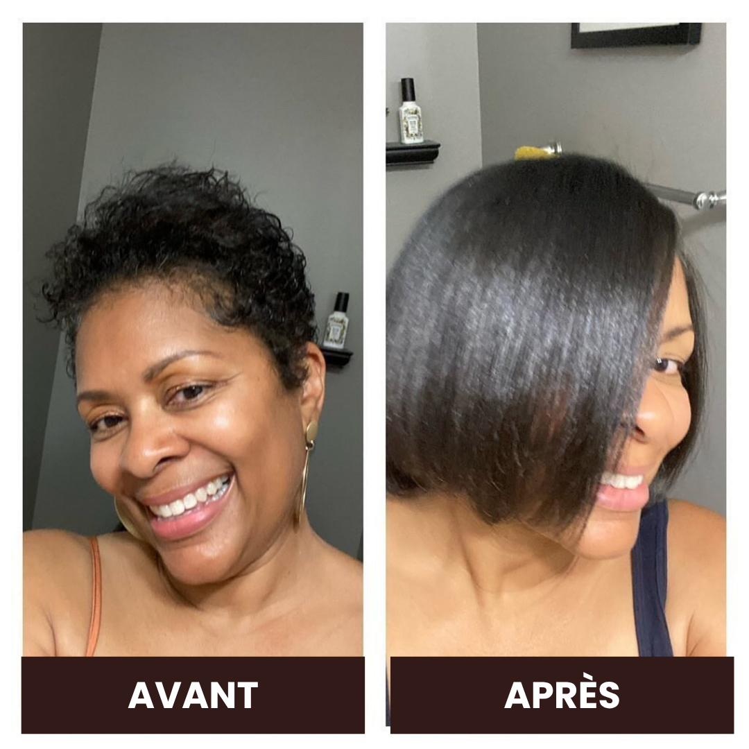 Les résultats peuvent varier selon le type de cheveu et la fréquence d’application.